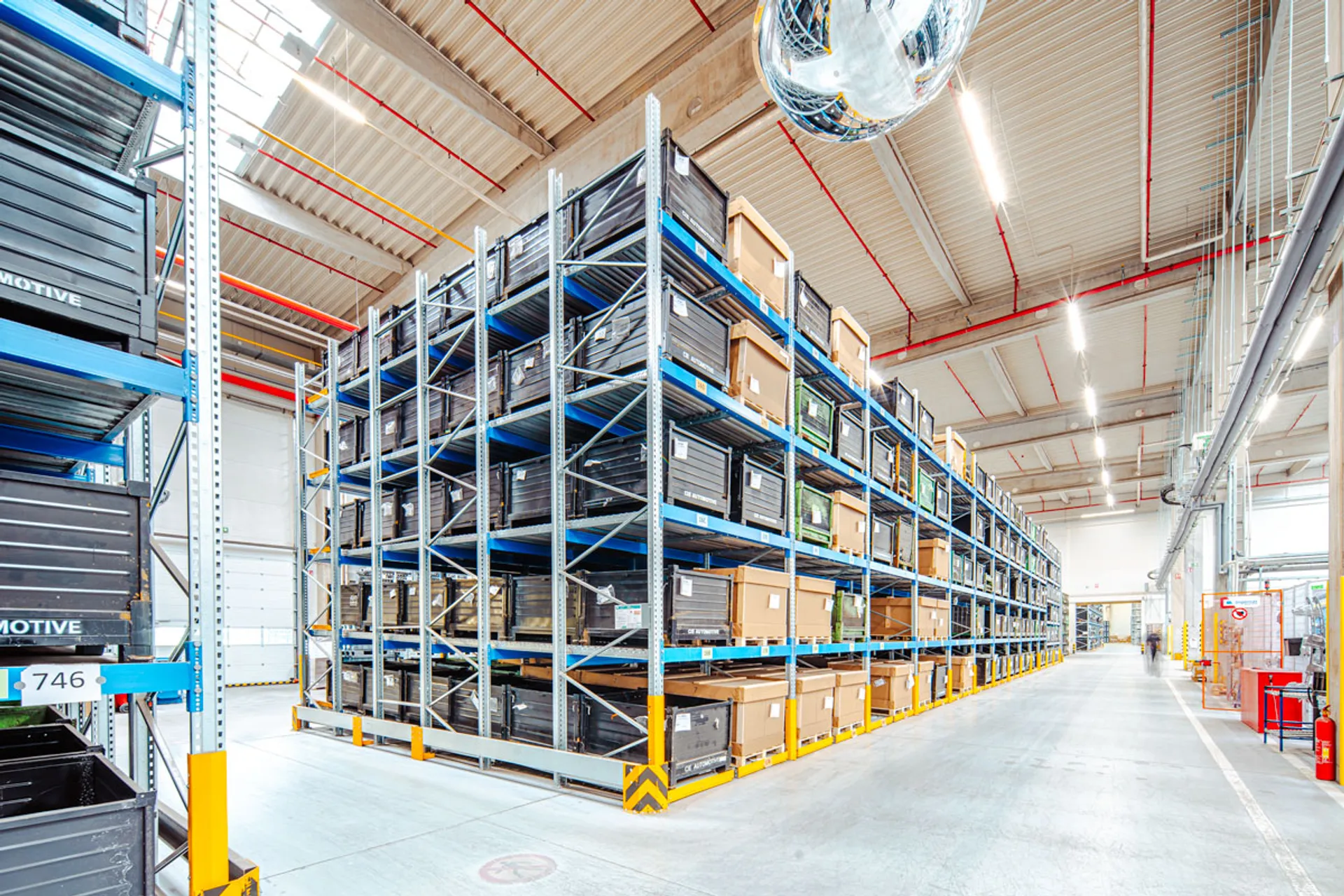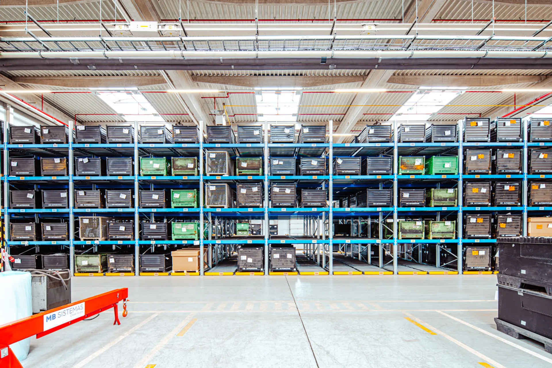 Spádový paletový regál dodávaný ve dvou etapách. První etapa dodána v roce 2022. Celková kapacita 1476 palet pro 5 různých typů palet. Rozměry palet 1200 x 800 plastová paleta, 1200 x 1000 gitterbox a 1600 x 1200 plastová KTP paleta. Druhá etapa dodána v roce 2023 s celkovou kapacitou 660 palet pro 2 typy palet. 1200 x 800 a 1200 x 1000 mm.